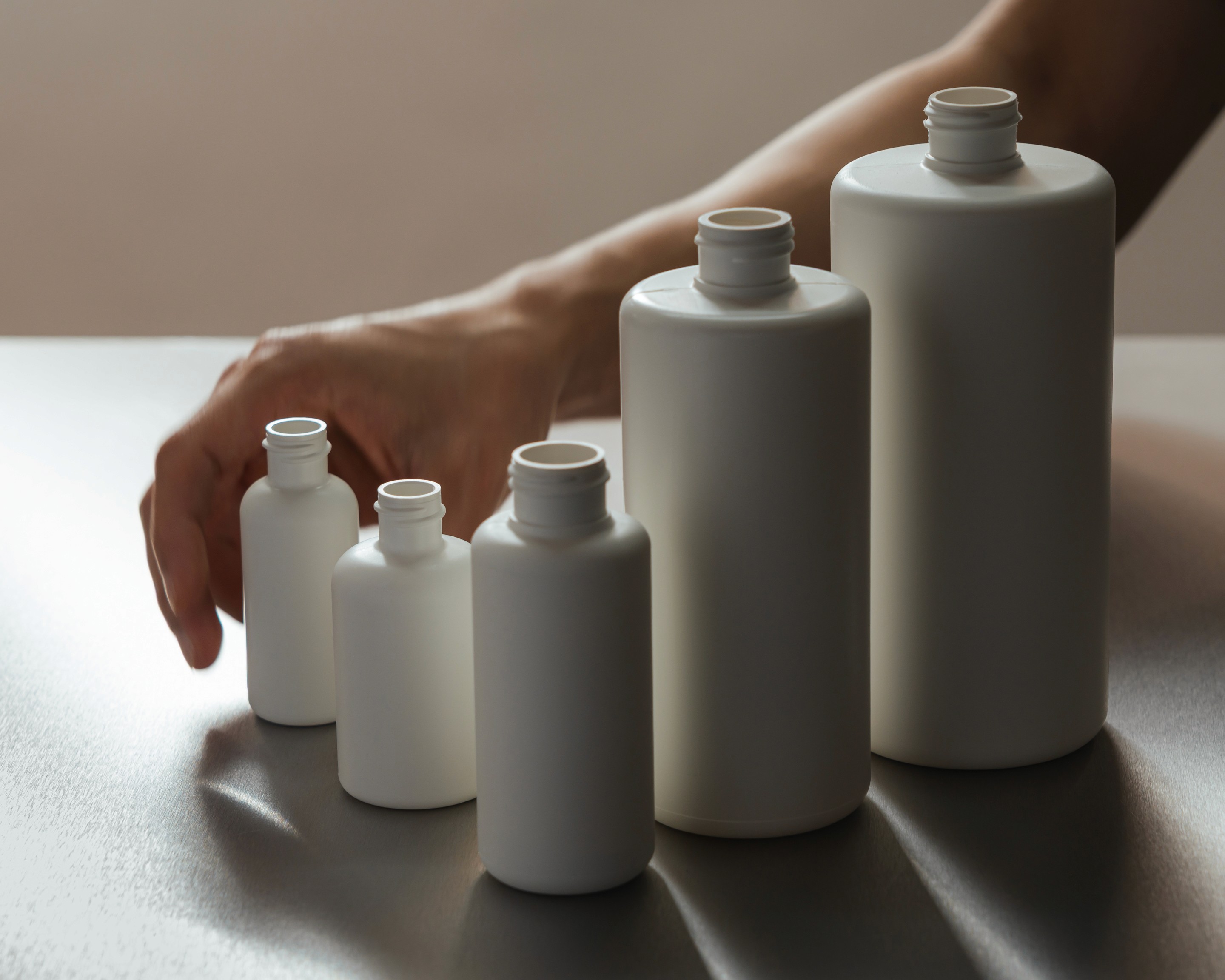 format: rigid and squeezable bottles / sizes: 30-500ml / finish: matte, soft-touch / decoration: screen print, label, stock colours, custom colour-match / closure compatibility: VIVOMER closures (see closures below), neck 24/410 / shelf stability: 3+ years compatibility tested: surfactants, oils, alcohols, fragrance loads / food contact: FDA and EU 10/2011 certified / manufacturing: UK, EU, US / use cases: haircare, body care, suncare, refill systems, household care / MOQ: 10,000